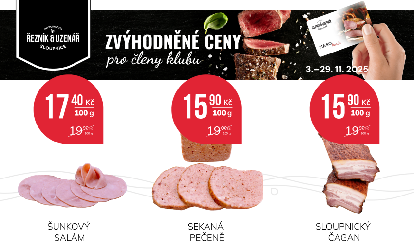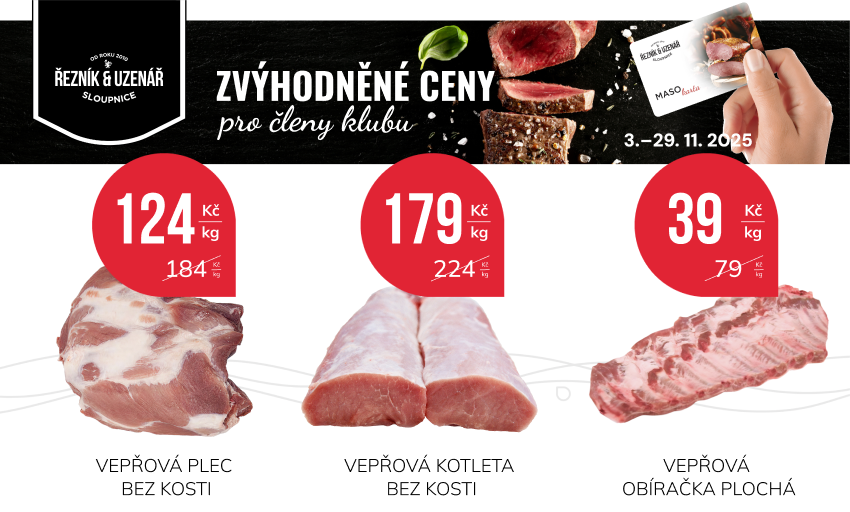 listopad je tady a s ním i nové výhodné nabídky pro členy našeho klubu! Od pondělí 3. 11. do soboty 29. 11. 2025 můžete nakupovat vybrané produkty za speciální klubové ceny.