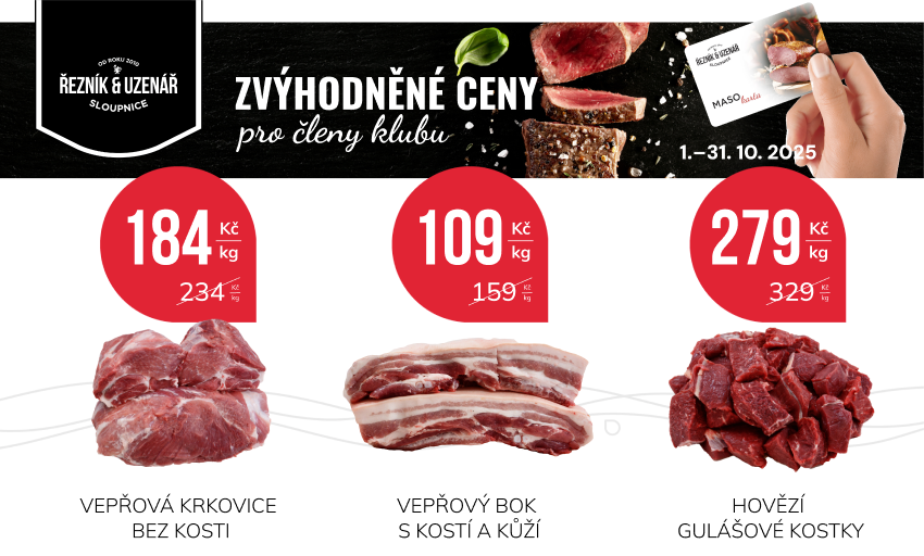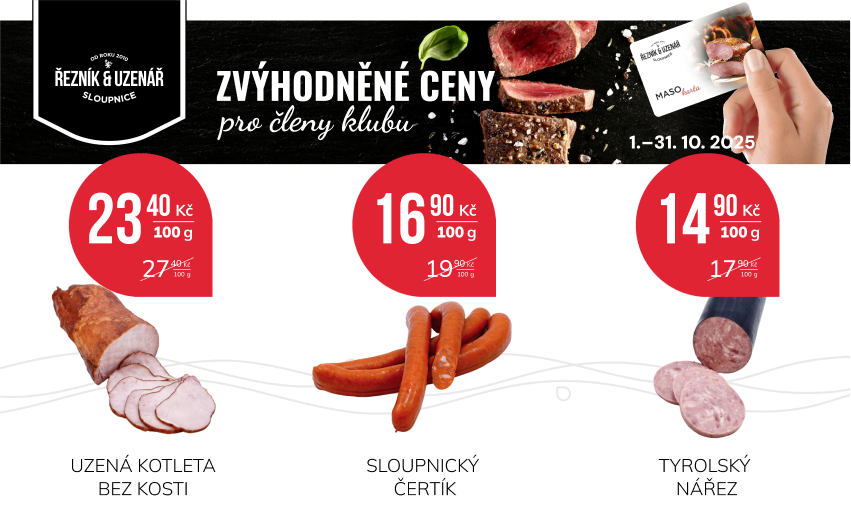 říjen je tady a s ním i nové výhodné nabídky pro členy našeho klubu! Od středy 1. 10. do pátku 31. 10. 2025 můžete nakupovat vybrané produkty za speciální klubové ceny.