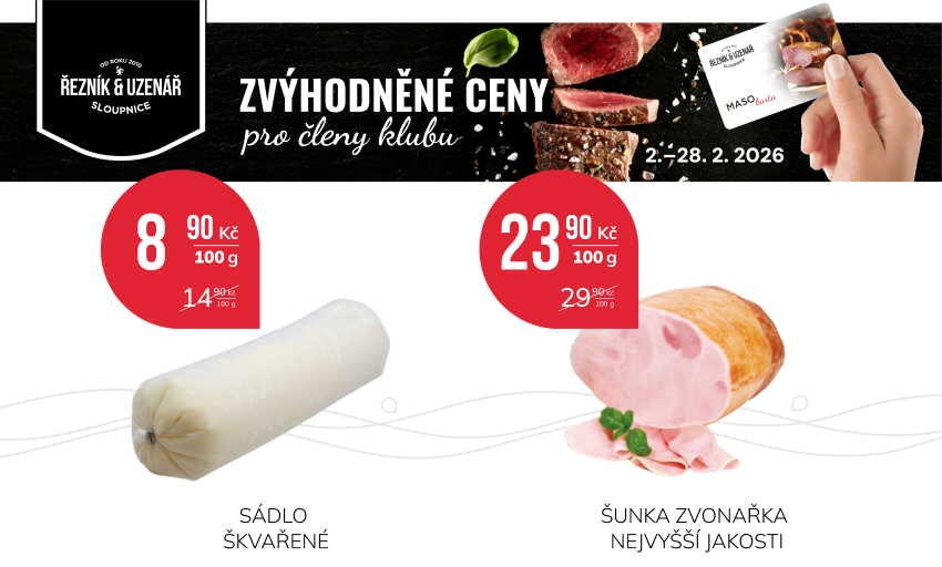 únor je tady a s ním i nové klubové nabídky! Od pondělí 2. 2. do soboty 28. 2. 2026 můžete nakupovat vybrané produkty za speciální klubové ceny.